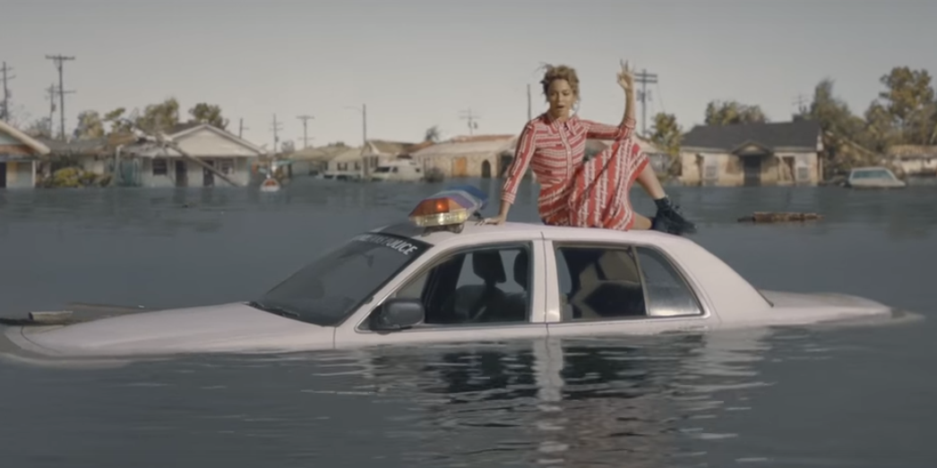 The imagery pays tribute to New Orleans – particularly to the aftermath of Hurricane Katrina. There is also a scene that seems to reference Trayvon Martin’s death: a young black man wearing a hoodie is before a line of police officers. “Stop shooting us” is written on the wall, which was seen as Beyoncé aligning herself with the #BlackLivesMatter movement. Some interpreted the video as an attack against police officers and started the hashtag #BoycottBeyonce, urging others not to watch her halftime performance.